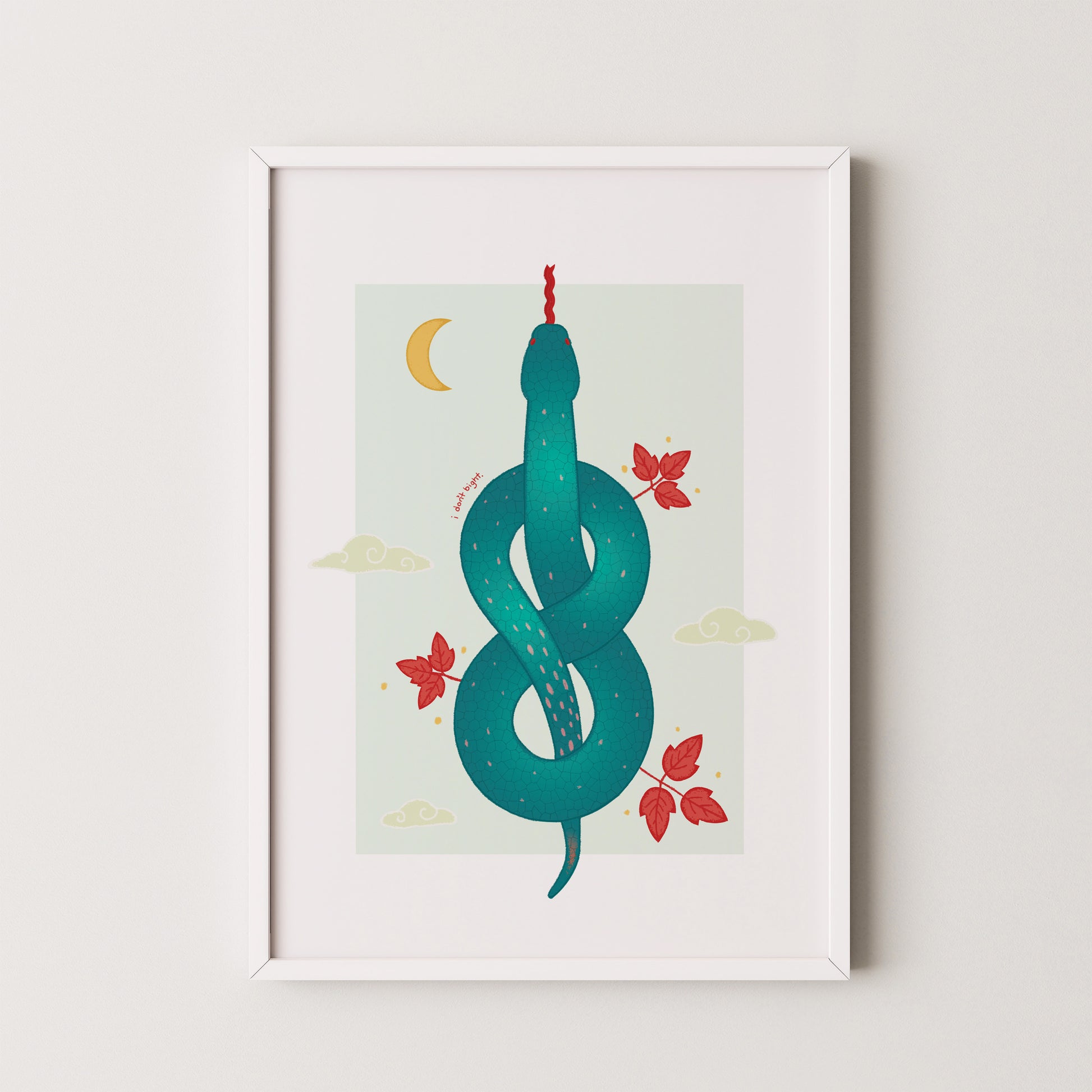 “Snake Bight” from my Daydreams of the Void series. A figure-8 knotted blue viper that plays on the dual meaning of 'bight' and 'bite'.
