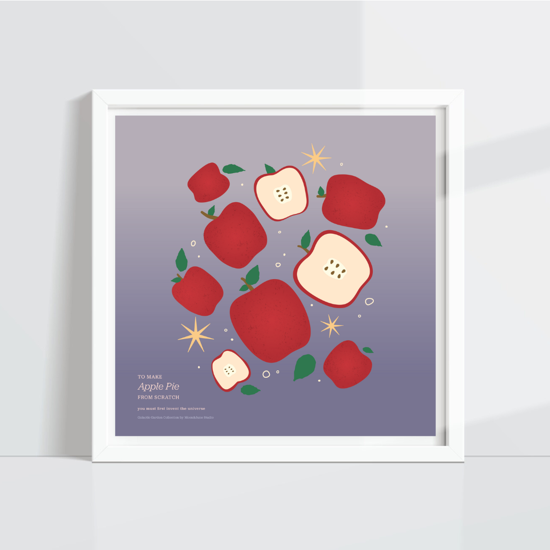 From the Galactic Garden Collection, the “To make an apple pie from scratch, you must first invent the universe” — quote by astronomer Carl Sagan, perfectly ties apples (and pies) and the cosmos together!